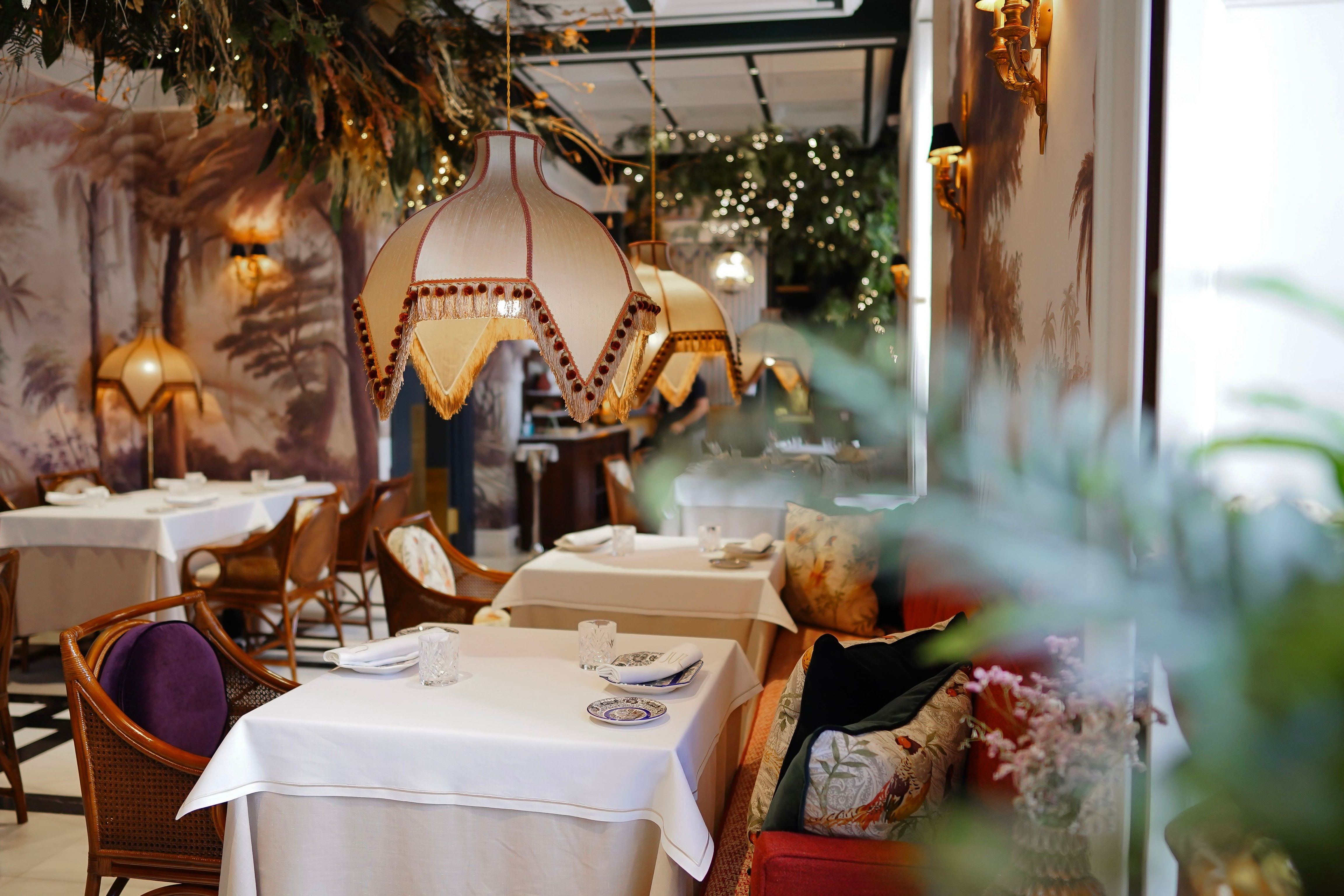 The hotel's T22 restaurant (named after the building's street address, Calle Tornería 22) occupies a front-facing room accessible from both the main square and hotel lobby. The decor is jewel-box opulent—velvet chairs, fringed table lamps, plump cushions—and has a cozy feel. Chef Verónica Muñoz crafts seasonal dishes from Andalusian ingredients, combining traditional techniques with contemporary presentation. The autumn/winter menu includes generous burrata on roasted eggplant, red tuna tartare "Gadira" with bok choy, and squid stuffed with lobster. The wine list naturally showcases Spanish classics and Jerez's signature sherries—finos, manzanillas, olorosos, Pedro Ximénez.