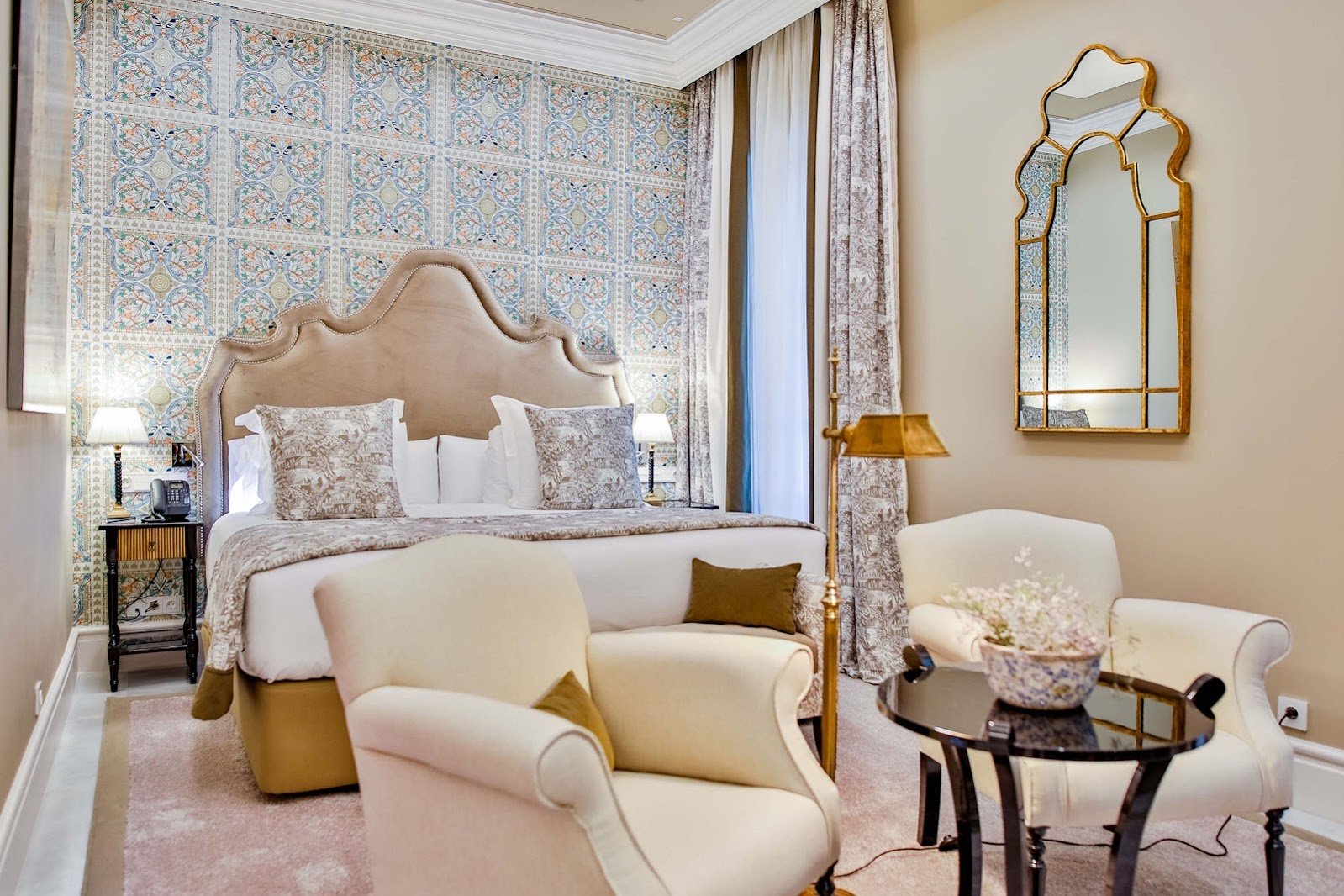 The 21 rooms vary in size and aspect, each with its own character. The Maria Luisa Suite overlooks the garden courtyard, while the Jerez Suite includes a private patio and separate lounge. Premium and Deluxe rooms offer interior patios or balconies facing the main plaza. Interiors are traditional with a contemporary edge—plush sofas, marble bathrooms with twin sinks and separate tubs and showers, Nespresso machines, and minibars. Beds can be tailored with a pillow and sheet menu, including Egyptian cotton, linen or silk options, and guests can choose from four bathroom amenity lines, including Codage, the French clinical skincare brand.