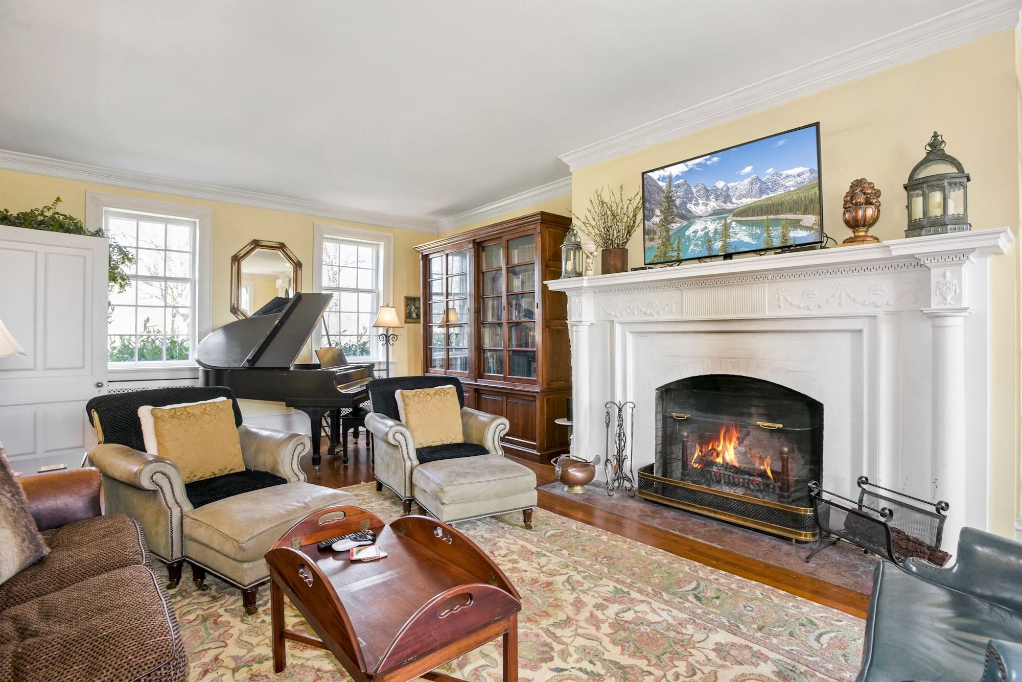 We absolutely love spending time in the luxurious library upstairs, complete with a fireplace, two overstuffed easy chairs, and of course, walls absolutely lined with books (as well as carefully placed lighting for maximum enjoyment at all hours of the day).