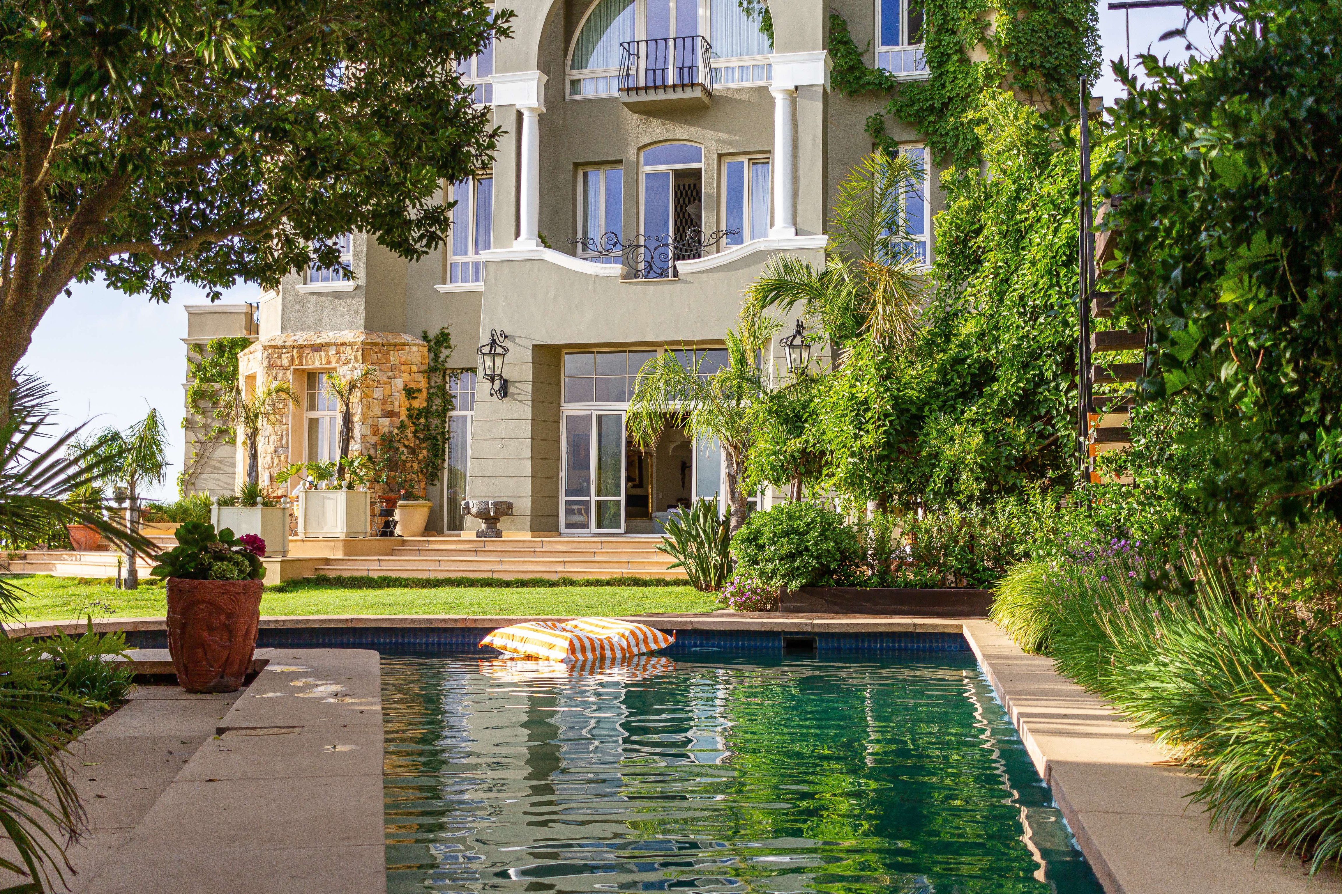 A heated swimming pool, subtly echoing the shape of a music note, overlooks the ocean from its perch on the manicured lawn. There is also an outdoor sauna and steam room, plus easy access to exclusive hiking trails up Lion’s Head, Signal Hill, and Table Mountain.