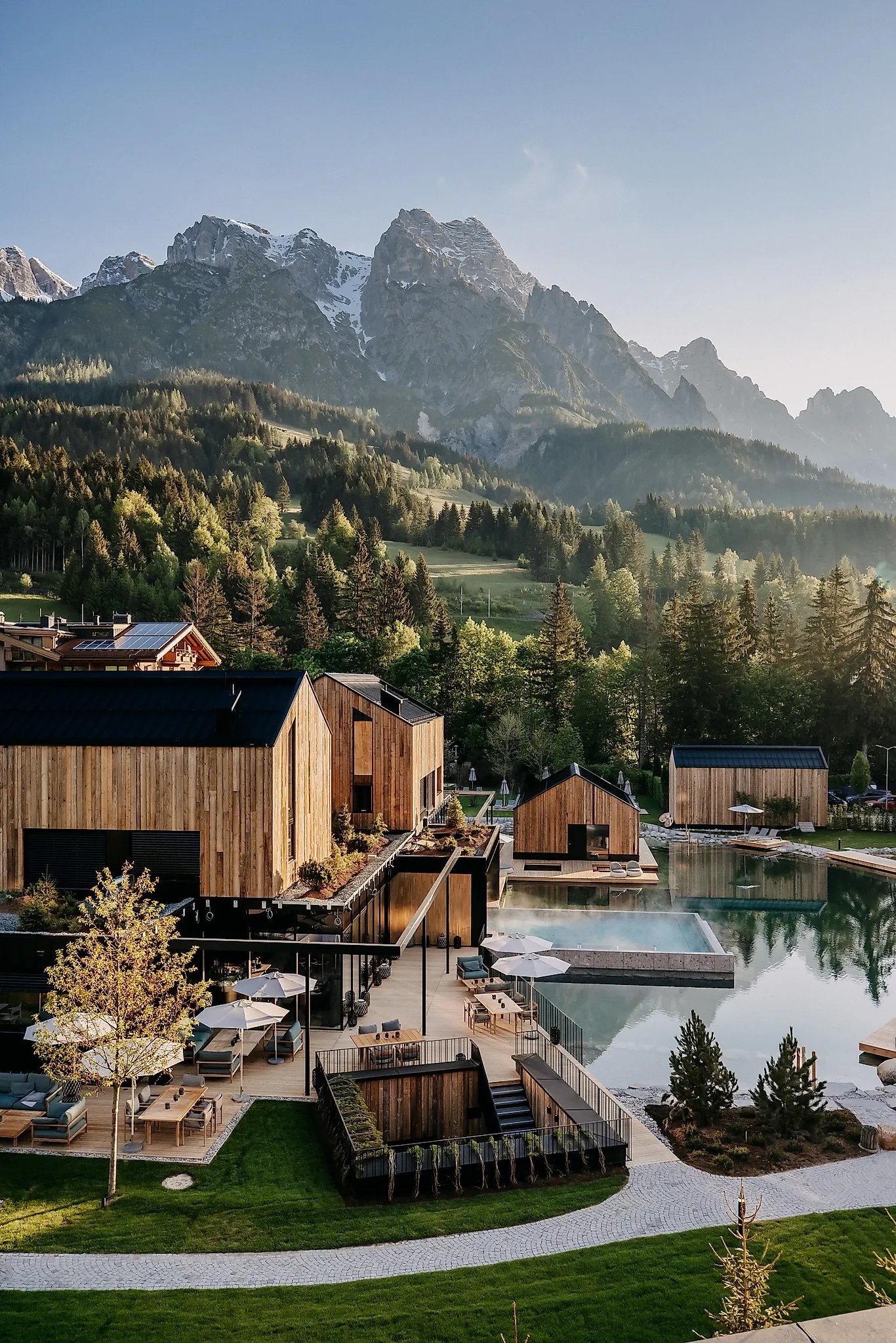 Few hotels balance nature and luxury like Naturhotel Forsthofgut. Local architect Andreas Hallinger of Markand Design Studios led the new construction and interiors, ensuring that every detail reflected the hotel’s deep-rooted sustainability philosophy. Think natural materials, sleek finishes, and serene spaces. The wellness area is a standout, with a panoramic pool, adults-only spa, and natural swimming pond. Families are covered too, thanks to a forest playground, kids’ farm, and club. The food? Fresh, local, and divine. Whether you’re here to recharge or roam the mountains, this five-star retreat is where Austrian beauty and thoughtful design meet.