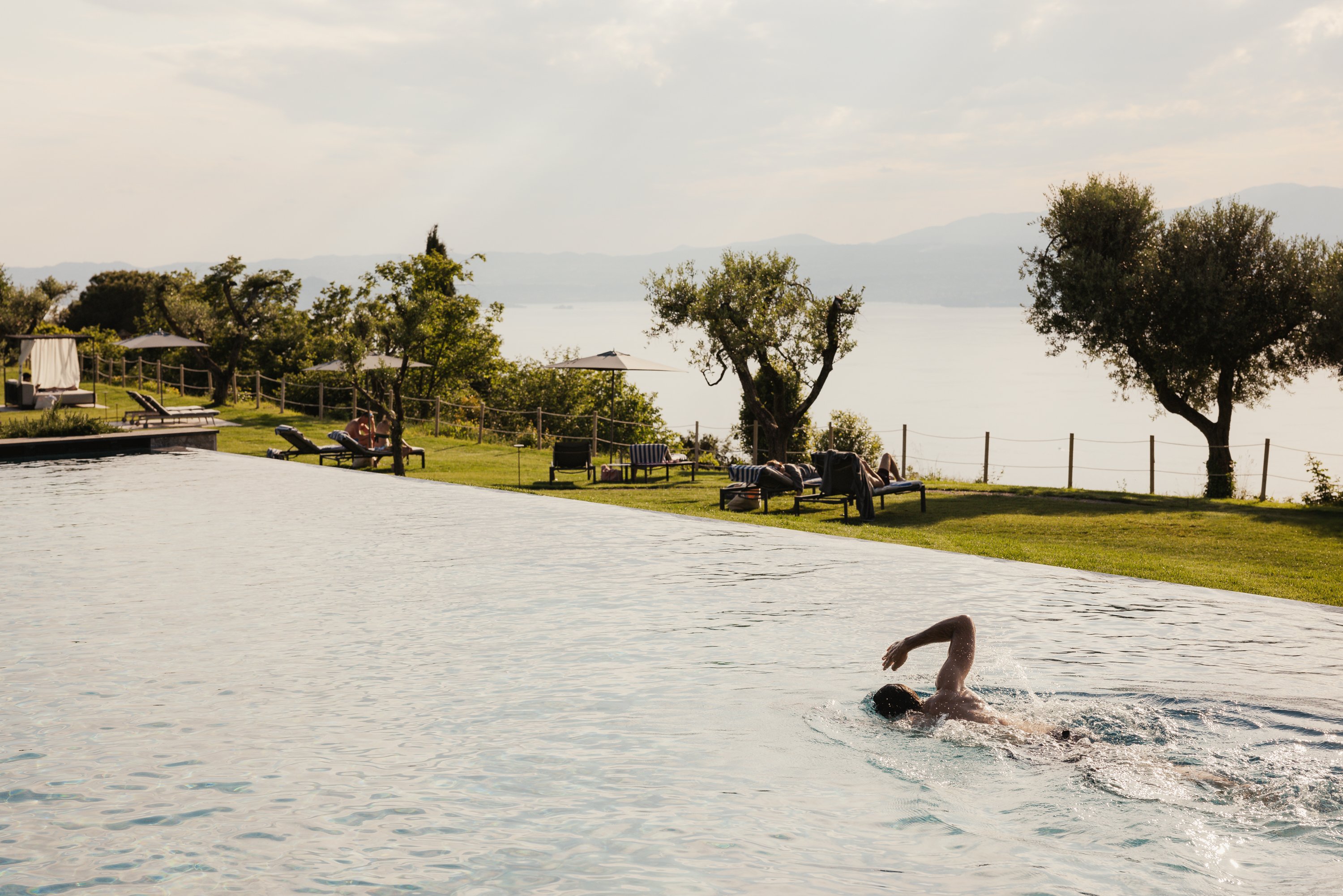 As for the hotel’s actual location, it’s tucked away in the hills above the water with uninterrupted views that’ll make you want to steal a glance every chance you get. To get to Cape of Senses, it’s just a short drive up from the town of Torri del Benaco. The journey to the top is an experience in itself, complete with glimpses of private homes tucked behind long driveways, large olive farms, and quaint bed and breakfasts. As you arrive at the top, Cape of Senses can be spotted behind a large gate, making every arrival feel exclusive. Once through the gate, it’s like entering a private retreat—quiet, peaceful, and undeniably luxurious. I can only imagine this is exactly how the Margesin family, who owns the hotel, must have felt when they stumbled upon an abandoned olive grove after 20 years of searching for the perfect spot.