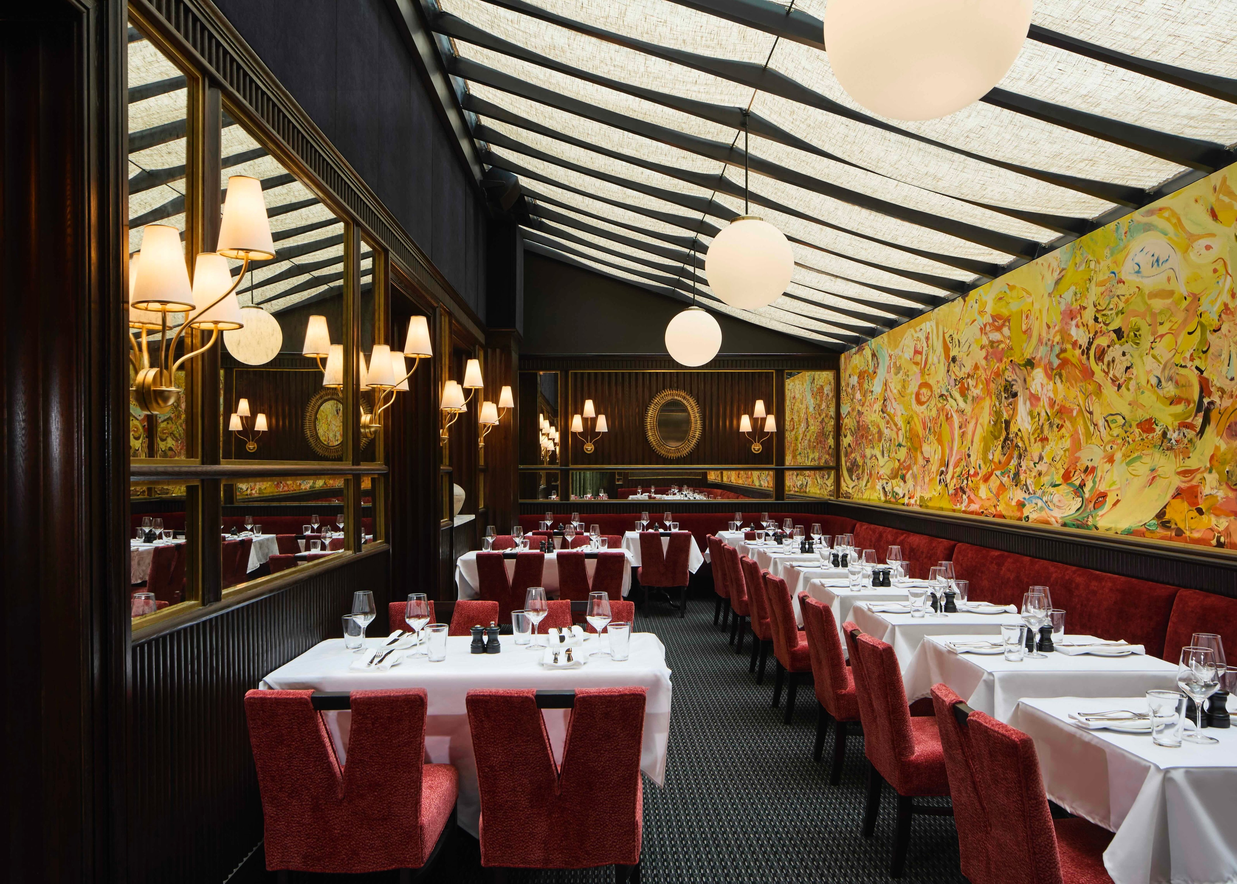 Even the menus double as art pieces, decorated with pencil and charcoal sketches of imagined dinner guests, a playful, artsy touch that feels perfectly at home in this creative corner of the Village. Anchoring the room is a 30-foot mural by celebrated English painter Cecily Brown. Splashed with bold yellows, oranges, and greens, it adds vibrancy to the otherwise sultry setting, creating the sense that you’re dining inside a painting. The whole effect is very Capote and his swans catching up over gossip.