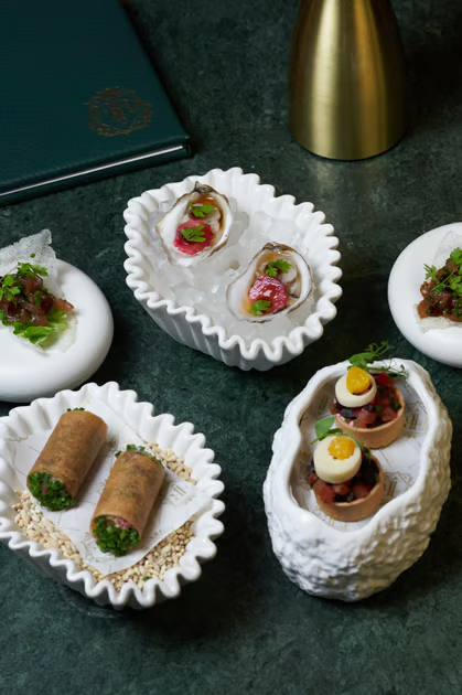 And while the whiskey list is legendary, the cocktail program deserves equal applause. Case in point: the Pizza Martini. New York has no shortage of these novelty riffs, but Flatiron Room’s version is the first I’ve genuinely loved. Olive oil–infused vodka, sun-dried tomato liqueur, and a goat cheese–stuffed charred olive strike the balance of savory and clean—it doesn’t overpower or veer into gimmick, but instead reads as clever, balanced, and surprisingly elegant.