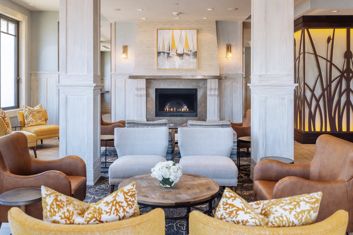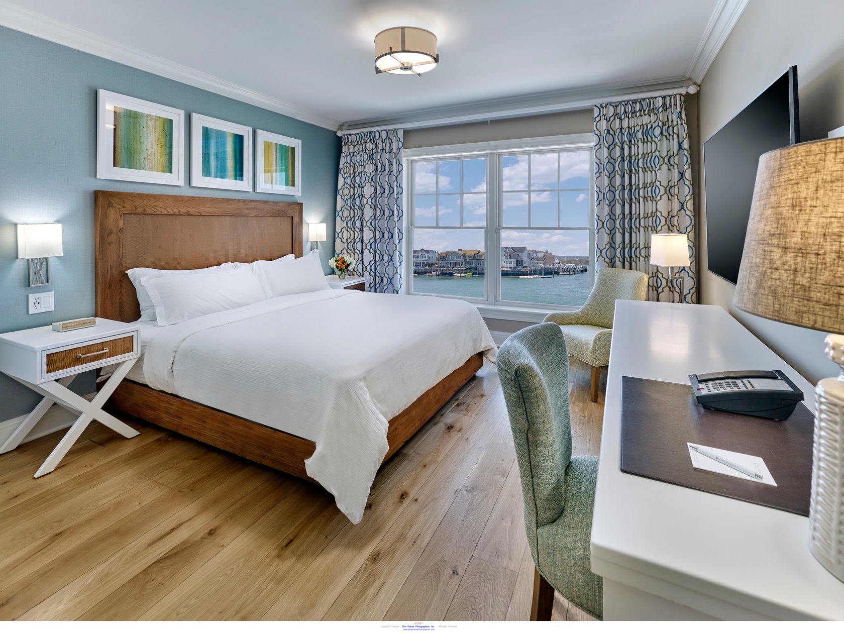 The halls leading to the guest rooms set the tone with pale blue wools, crispy white baseboards, beach photographs, light wood floors, and striped carpet that pulls from the seaside palette. Once inside, rooms continue the coastal theme. Perks include high-thread-count Frette bed linens and robes. Some accommodations have cozy fireplaces. Spring for one of the bay-view suites with a balcony facing the water.