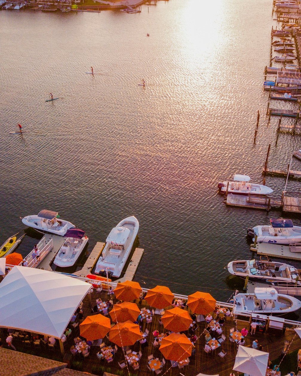 Amenities include complimentary bay activities like paddle boards and kayaks, boat docking, sunset charters (for an additional cost), a plunge pool, and hot tubs. One of the nicest perks of staying at The Reeds is the door-to-shore golf cart shuttle to the beach, just two blocks away. Once there, the beach butlers will gladly set up gratis orange umbrellas, chairs, and striped towels. In between sunning and swimming in the Atlantic Ocean, guests can order food and drinks.